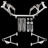 Key Specs Beautiful Silver Powder Coated Finish Durable 4130 Seamless Chrome-Moly Tubing & TIG Welded in Billet fixtures Lighter and more durable than the flimsy OEM Mild Steel construction Does not alter your wheelbase Saves 70 lbs over the factory K-member & A-arms Can be used with UPR Non-Adjustable, Adjustable A Arms or Factory A Arms All Welding & Materials Made in the USA Lifetime Warranty